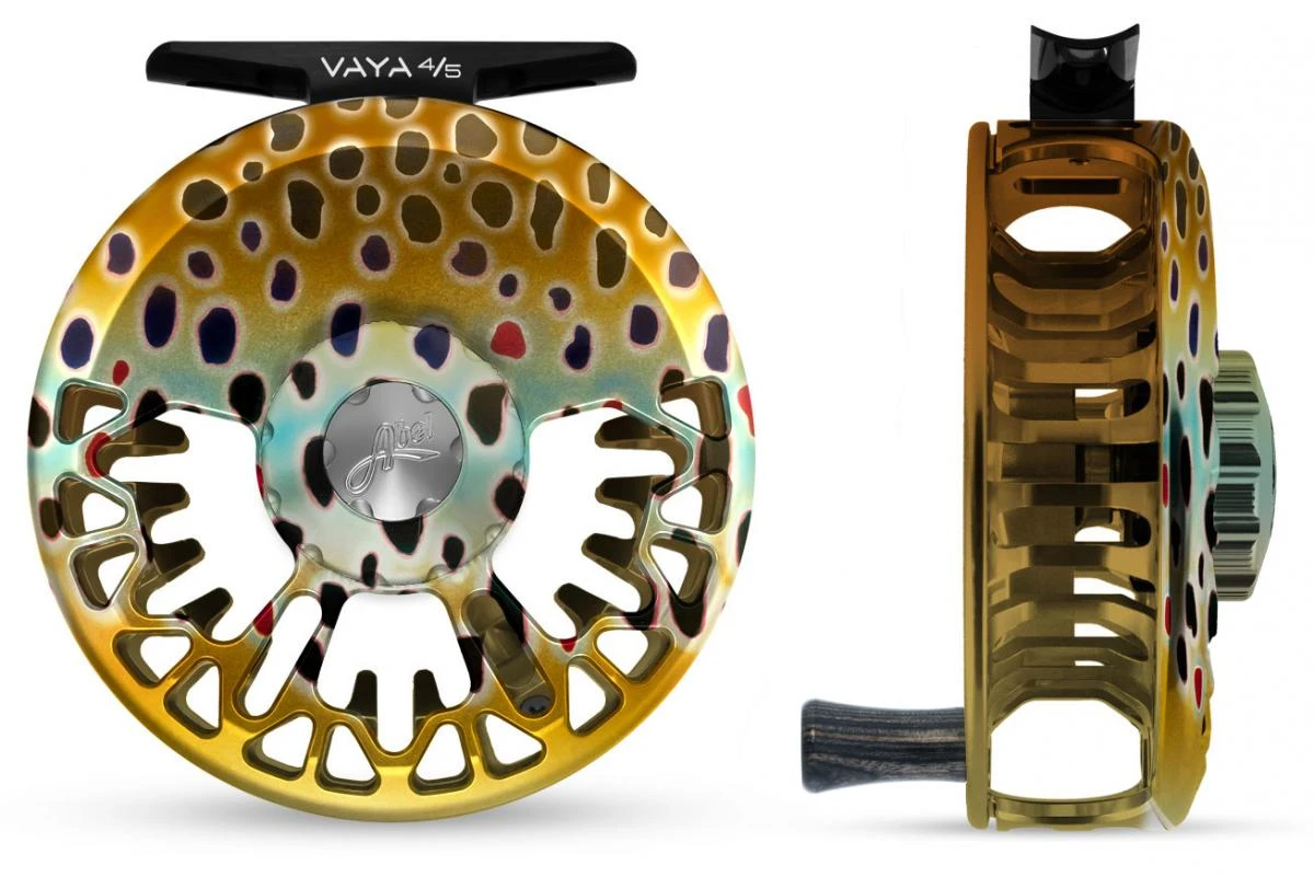 De Abel Vaya Native Brown #4/5 Reel is een vliegenreel voor de lijnklassen #4 en 5, die uitgevoerd is in schitterende beekforelkleuren op de spoel en het frame.