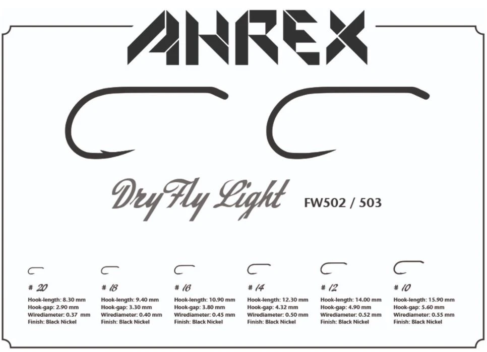 De Ahrex FW503 Dry Fly Light Barbless is een lichtere versie van de Dry Fly Traditional haak van Ahrex – perfect voor lichte en delicate droge vliegen.