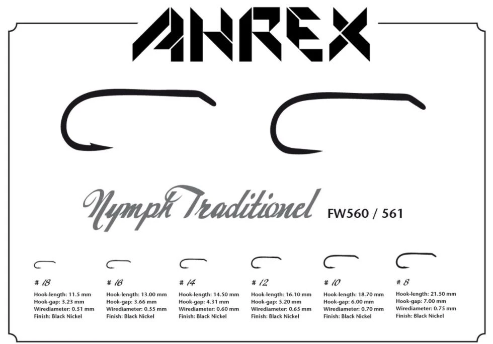 De Ahrex FW561 Nymph Traditional Barbless is een klassiek ogende, weerhaakloze nimfhaak met het extra voordeel van de ‘black nickel’ afwerking.