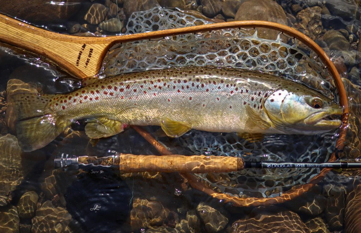 Altogether, you’ll find the Douglas SKY G Fly Rod Series offers superb dampening and recovery, near-effortless casting, accuracy, and outstanding durability. Innovative top-of-the-line components include: REC Titanium Cerecoil stripper guides with zirconia inserts, REC Titanium recoil guides, AAAA flor grade cork, a skeletonized aluminum reel seat, double uplocking rings with nylon bushings, and burled blackwood inserts. Includes a plush rod sock and aluminum tube