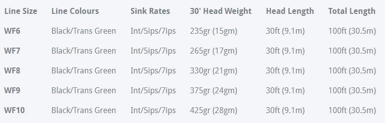 - Een compleet intermediate zinkende vliegenlijn met een 4,50 meter lange, transparante punt voor het vissen op dieptes van 100 tot 150 cm