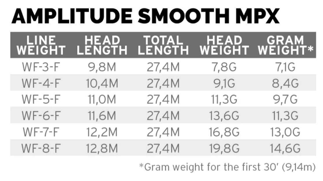 The Amplitude Smooth series of lines are, simply put, the highest-performance smooth fly lines in the world. With up to five times less drag and eight times the durability of traditional lines, this will change the way you look at fly line performance. Built a half-size heavy, the Amplitude Smooth MPX taper starts where the GPX left off. Redesigned with more mass toward the front of the head, the MPX provides the same benefits of the GPX, with an added emphasis on presentation. The power is still there, only with an added bit of finesse. Meet your new best friend.