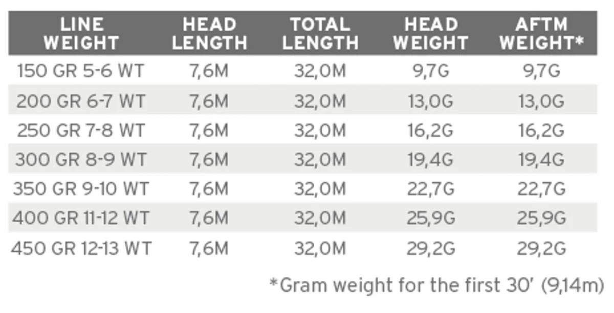 | Maak uw keuze | Maak uw keuze, 150 grain/5-6 wt/Chartreuse-Charcoal, 200 grain/6-7 wt/Yellow-Charcoal, 250 grain/7-8 wt/White-Charcoal, 300 grain/8-9 wt/Green-Charcoal, 350 grain/9-10 wt/Orange-Charcoal |
