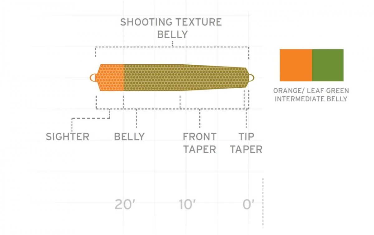 - Shooting Texture zorgt ervoor dat de vliegenlijn gemakkelijk uit de diepte kan worden gehaald voor de volgende worp