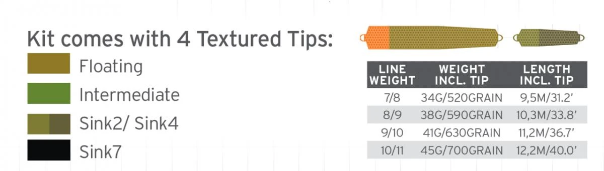 - Kit wordt geleverd met vier Textured Tips: – Drijvend – Intermediate – Sink2/Sink4 – Sink7 Â Â Â
