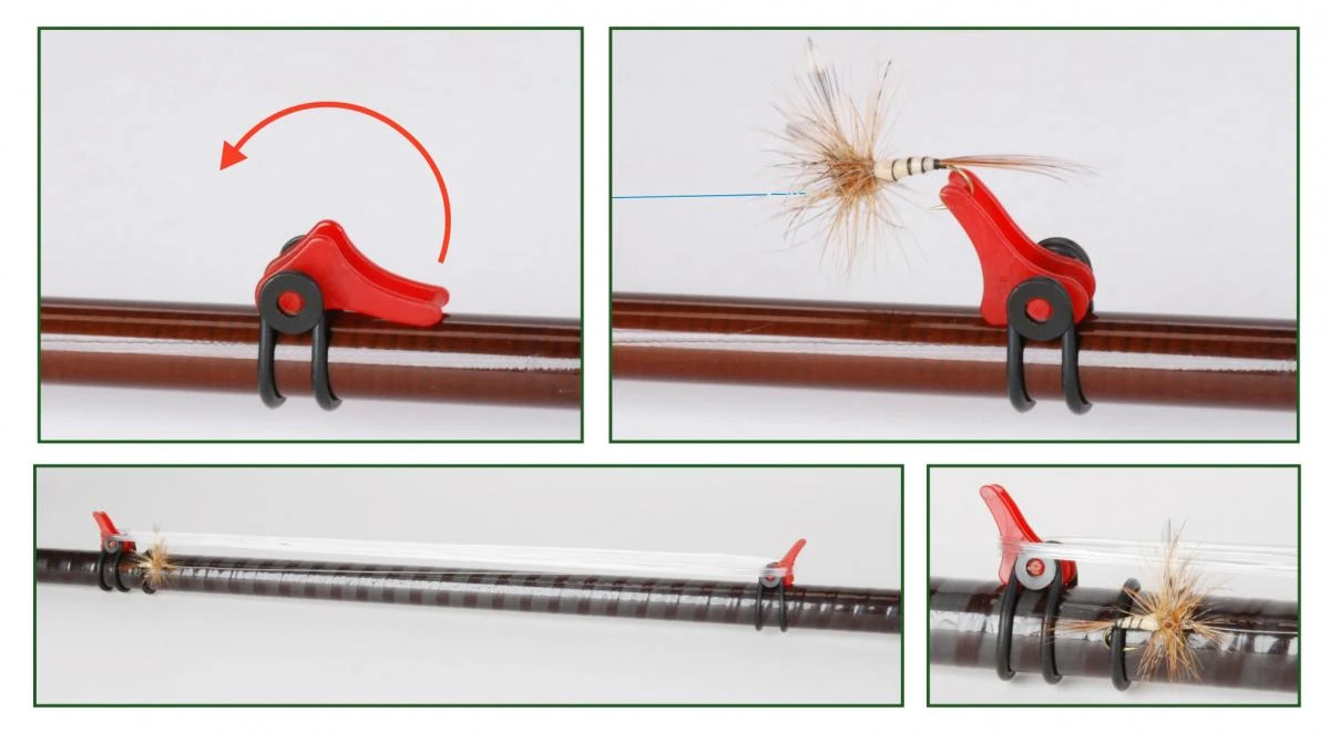 Holder designed to secure the hook to the fishing rod. It can be attached to the rod thanks to o-rings supplied in different sizes. Its special shape makes it also particularly suitable to wind the tippet on Tenkara rods.