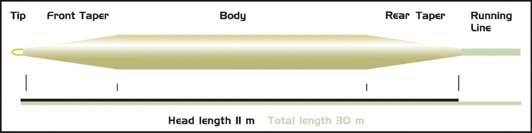 De Vision Tane Floating Fly Line is verkrijgbaar als traditionele weight forward (WF) vliegenlijn met een 11 meter lange buik en als double taper (DT) vliegenlijn.